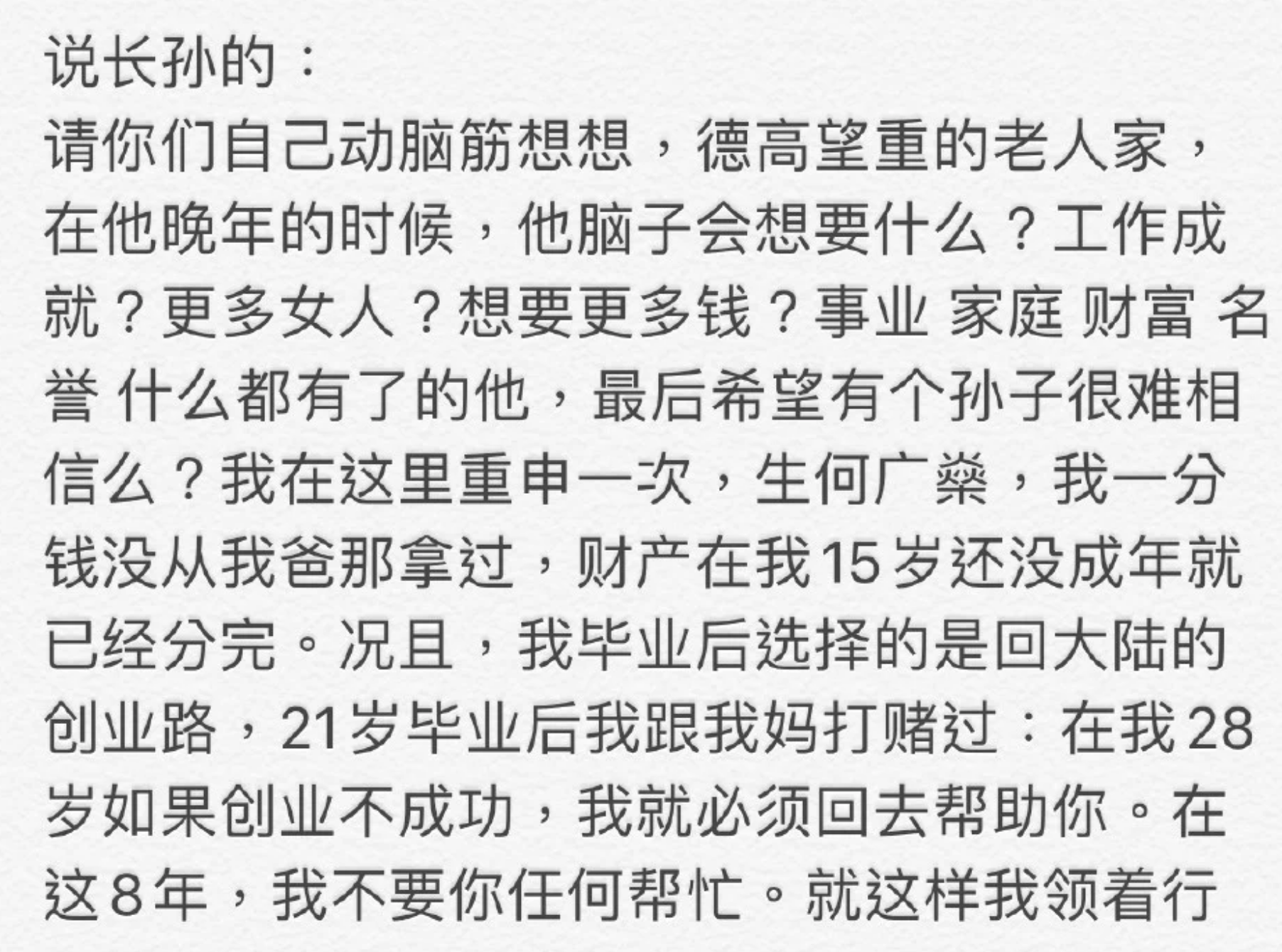 對於我們而言,作為賭王的兒子,可以稱得上就是含著金鎖匙出世的人生勝利組,而何猷君的家庭背景富裕、學歷高人又長得帥,也被稱為「城中筍盤」,去年5月他向奚夢瑤的世紀求婚絕對令人難忘,至奚夢瑤為何家誕下長孫後,更有網友表示他倆又可以分多一份家產,那時何猷君也在微博上忍不住直接回應:「生何廣燊,我一分錢沒從我爸那拿過,財產在我15歲還沒成年就已經分完」。