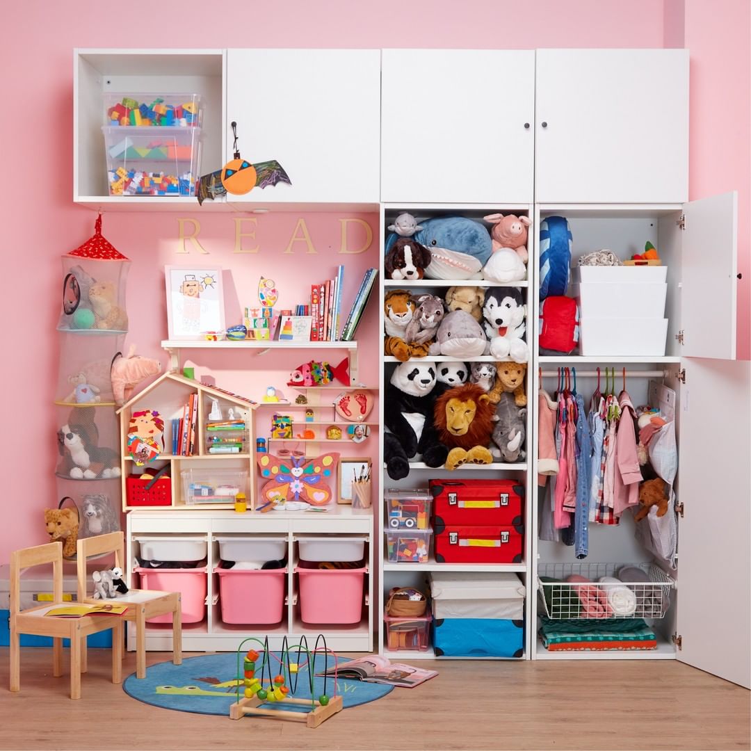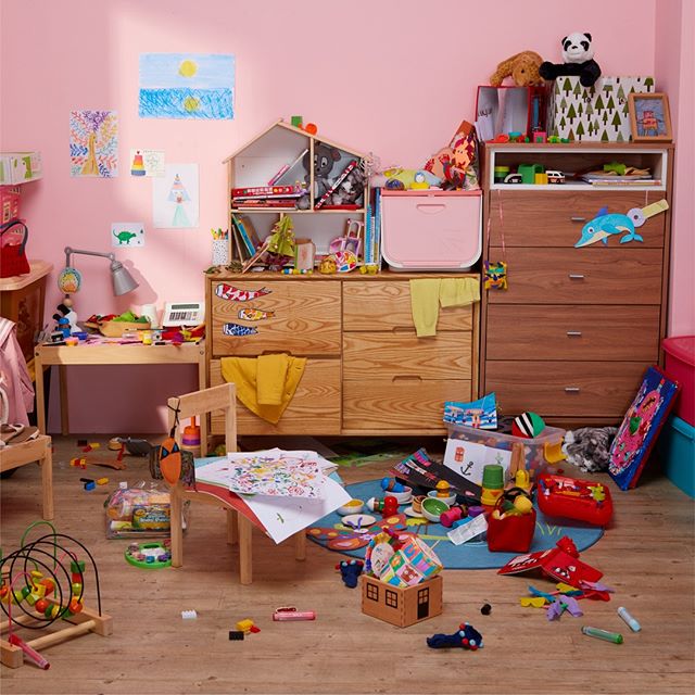 家中有小朋友,會多了很多玩具及小朋友用品,現在大多數家庭都是雙薪家庭,平時放工回家要照顧小朋友起居飲食,已經缺乏時間去打掃家居,長年累月下來家中變得很雜亂。建議利用大量多用途的貯物組合收納雜物,不但方便父母收納各式物品及照顧小朋友,亦能令家居變得井井有條;若是家中沒有太多空間置放貯物箱,可以善用牆面來收納小朋友物品。