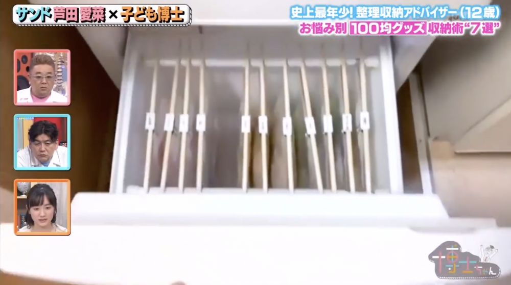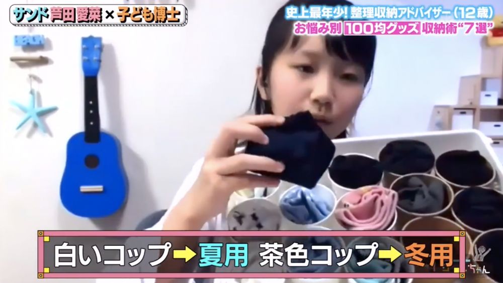 另外清水麻帆又教了大家想不到的小技巧,就是利用紙杯就可以把雜亂無章的内衣和襪子等小件的衣物,有秩序地排列整齊!