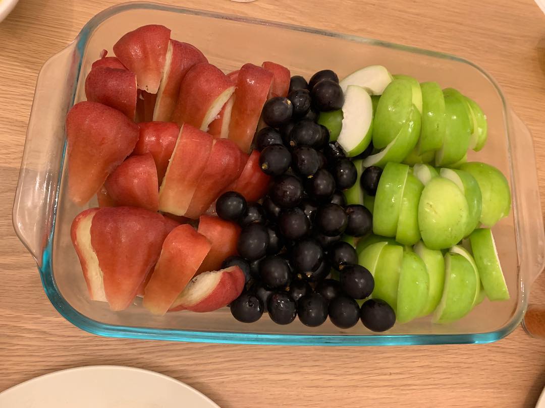 以水果為主,士多啤梨、奇異果、小番茄、香蕉等(其中2份)