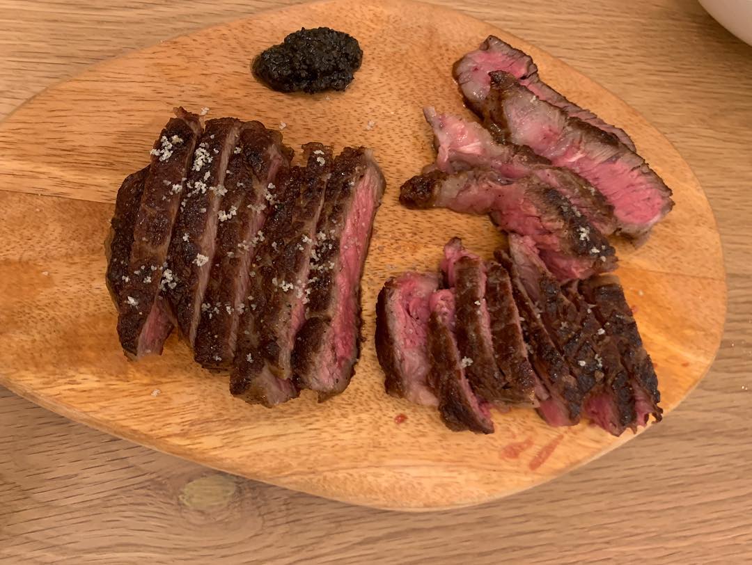 烤羊排或煎牛排(蛋白質2份)、白灼青菜(1份)