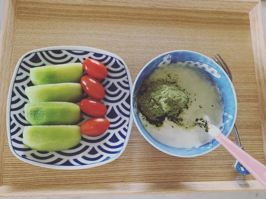 早餐以清淡為主,將大麥若葉粉末直接加入乳酪。大麥若葉粉末含有豐富纖維,可以幫助腸胃蠕動,加入乳酪食用或者直接沖水喝。