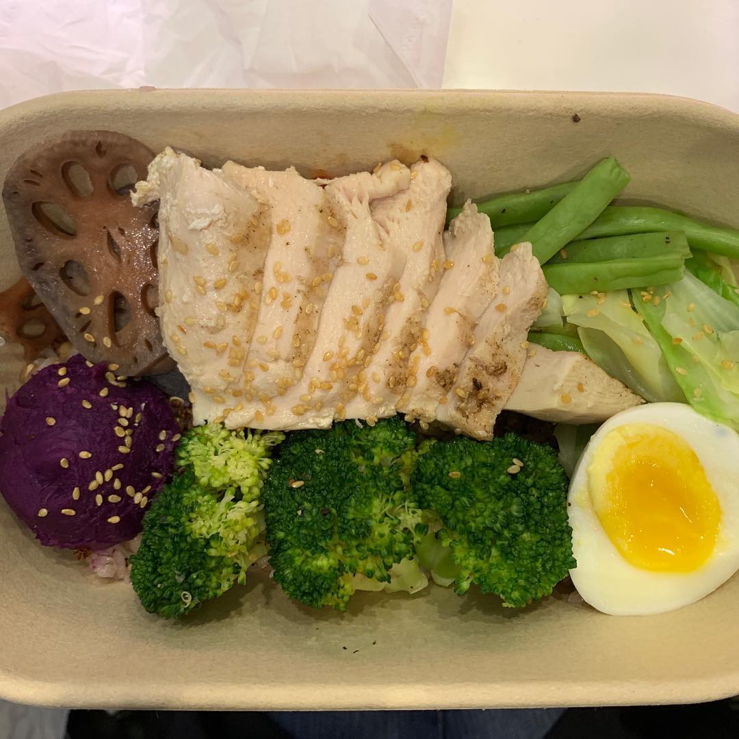 燙豬頸肉或蒸魚(蛋白質2-3份)、五穀飯(1/3碗)、白灼青菜(1份)、魚湯、蚵仔湯和蛤蜊湯等湯品
