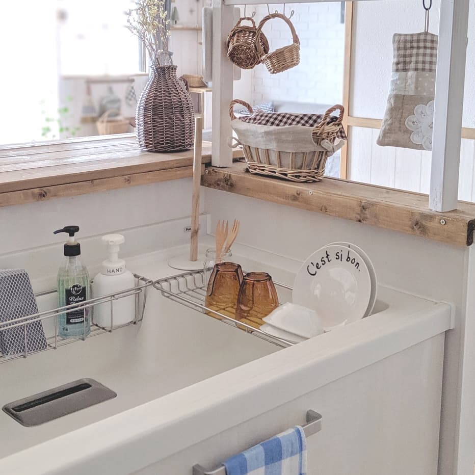 掛在廚房洗手盤旁的滌水架,幾乎是每個日本廚房必備的單品,用來放洗潔精,百潔布、洗淨的杯碟等,不易發霉。日本300円3coins 店有售,一般家品店也能找到。