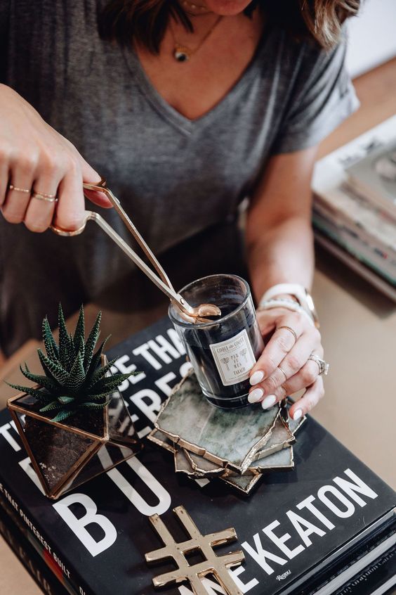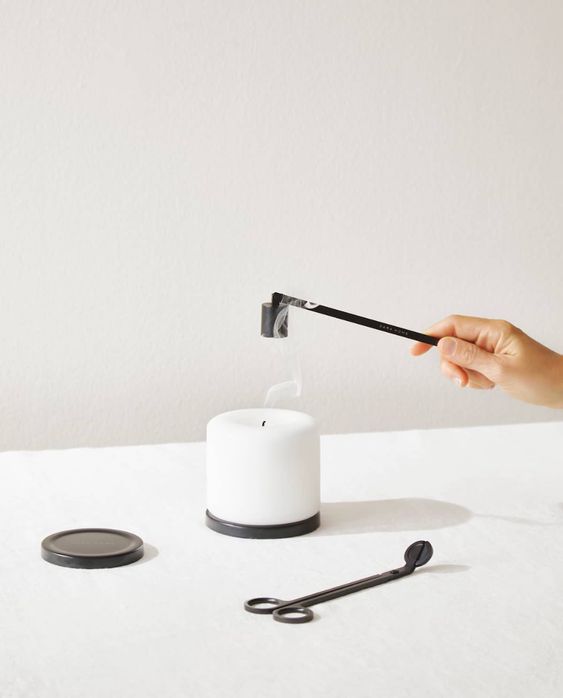 最常犯的錯!很多時,我們都用好直接地用口吹熄長時間點燃的香薰蠟燭,可知這做法極有可能會將已融化的蠟吹出來,另外亦有可能令燭芯變歪。最佳方法當然是用滅燭器,你亦可用蠟燭蓋來熄火,能同時避免黑煙出現,形成灰塵!
