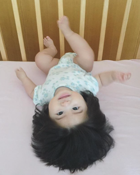 雖然只是個小嬰兒,但Chanco這驕人的髮量實在太令人羨慕,而且烏黑又有光澤,沒有梳理時Chanco就像一隻小獅子,讓媽媽也忍不住把獅子玩偶放在女兒旁邊做對比!