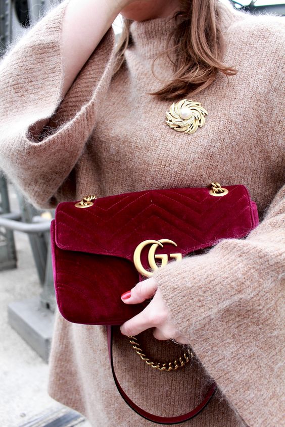 GUCCI GG Marmont 斜背袋好多人都鍾意,呢款酒紅色袋款加上絨面質地,成個感覺超高貴!