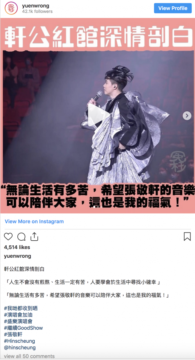 軒仔表示做人不可以一直給情緒所干擾,也不可以每天張開眼睛卻只有傷痛「所以我開始把每日早餐post上網。開始時沒特別意思,只是分享,所謂一個知名歌手的早餐,分分鐘不夠你們早餐好。但後來好多朋友留言,今日工作不開心,看完我留言好很多」並表示「你們看我的早餐post,我反而榮幸可以通過我的不幸為大家帶來如此娛樂。我的開心源自於別人的開心,看見別人開心我便開心。」