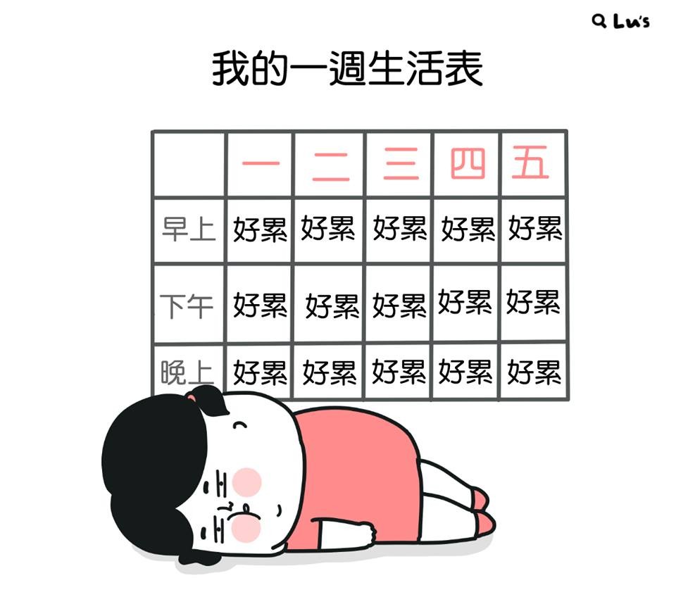 #4 「我的一週生活表:星期一至五、早上到晚上都是好累。」