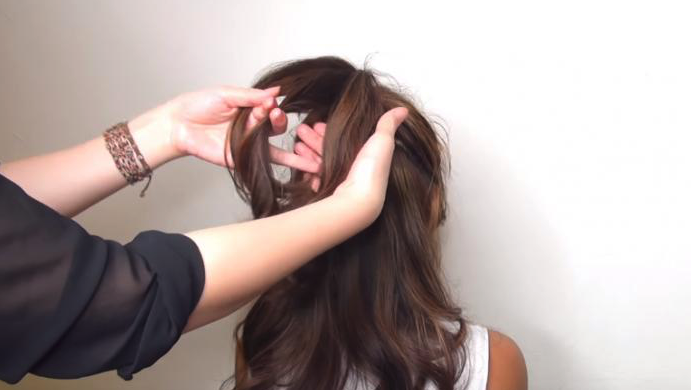 至於上面嘅部份,將兩邊頭髮向下輕輕拉,好似拉成一個扇子嘅形。