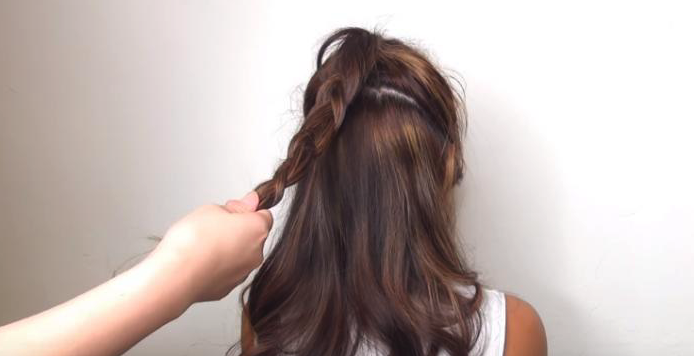 紮好一條魚骨辮或者普遍鬢辮,髮尾用黑橡根固定。