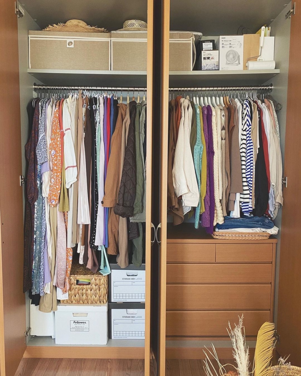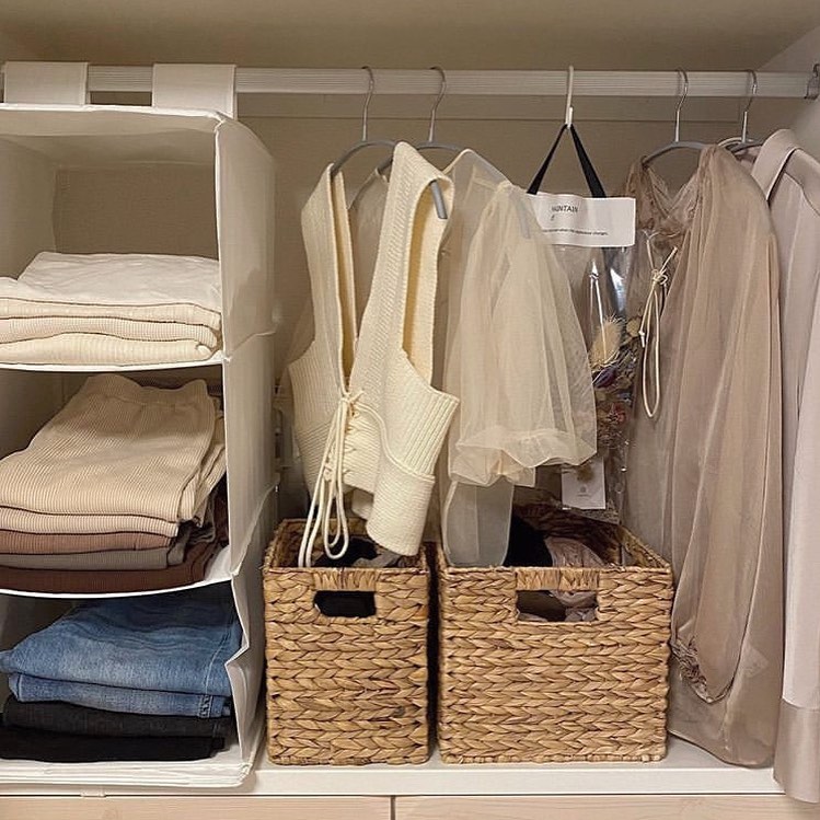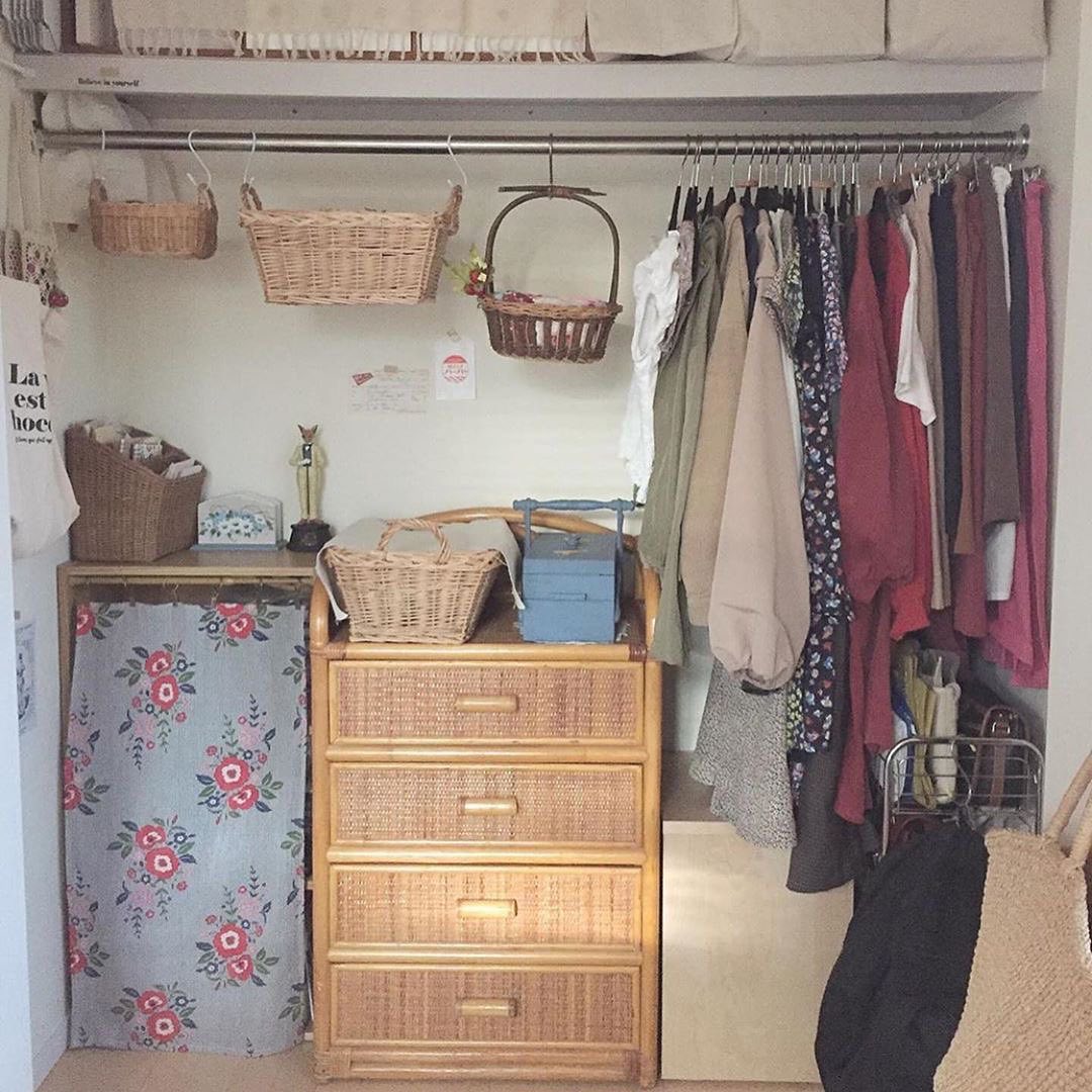 藤籃給人小清新的感覺,放在房間令時尚度UP!除了令整體看起來更整齊,用來收納東西也非常方便,還會給人置身於時尚雜貨店的感覺。一打開衣櫃,心情就雀躍不已!