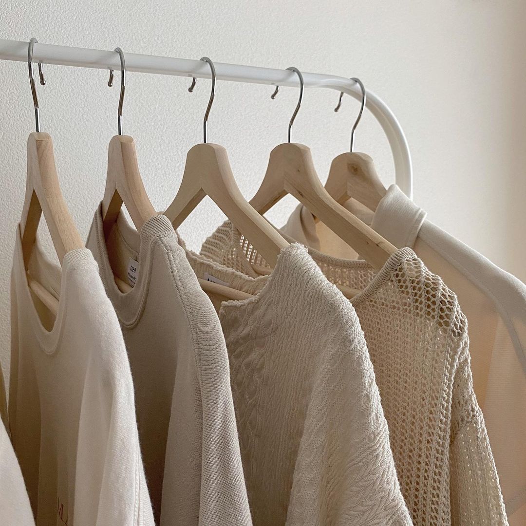 想讓衣櫃看起來乾淨清爽,不妨選用相同款式的衣架。統一選用木製或鋁製的衣架,就能瞬間提升衣櫃的時尚度!挑選衣架時,除了外觀之外,更要注重機能性。選擇能防衣服滑落的款式,就不必擔心衣服一直掉落了!