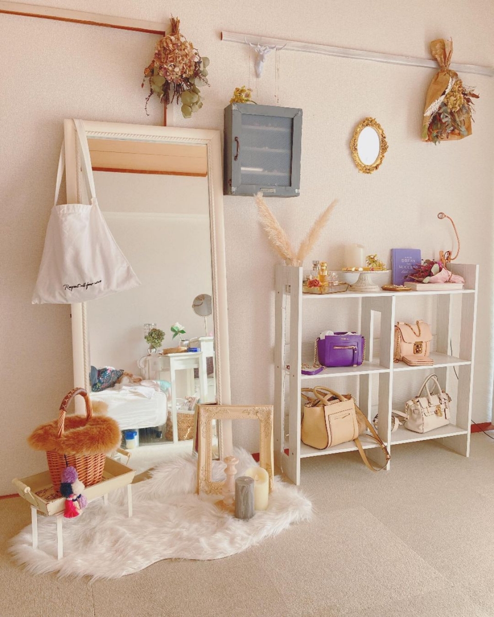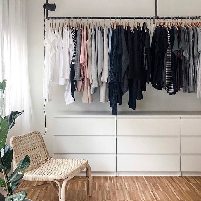 開放式收納能夠打造出店鋪的櫥窗感,將手袋和衣服用吊掛式展示它們,會讓房間顯得時尚有氣質,而到了出門打扮的時候,搭配衣服亦更方便了。