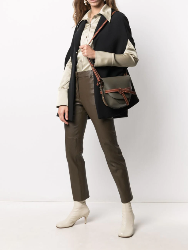 怕綠色難以Carry的你,不妨考慮Loewe這款墨綠Gate Bag。大熱的It Bag,最大特點是袋面的標誌馬鞍形翻蓋,以及皮繩綁帶設計,顏色低調,上班、假日都能配搭。