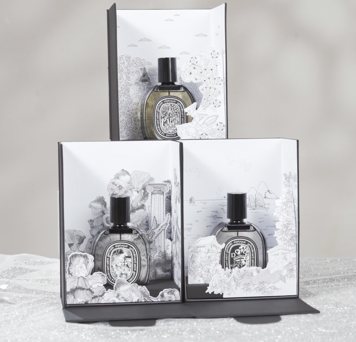 這個聖誕節Diptyque就為巴黎之水、肌膚之華、杜桑這3款熱賣的皇牌香水推出限量禮盒,打開禮盒就與立體畫冊一樣,以手繪圖案帶出每款香水背後的故事,低調中又非常有質感。聖誕節送給女生就最適合了!