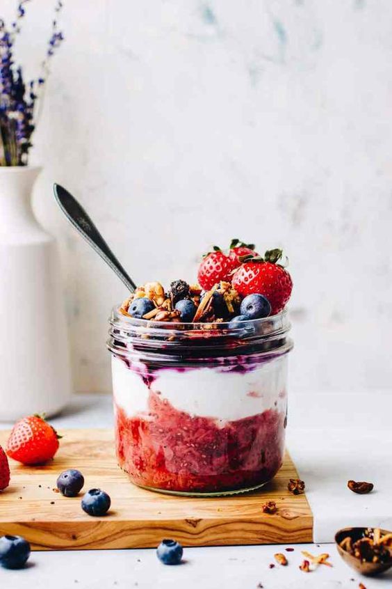 將半杯新鮮莓果混入蛋白質極高的希臘乳酪,能夠使飽腹感維持數小時,而且莓果帶淡淡甜味,不需額外加糖就可食用,非常方便!