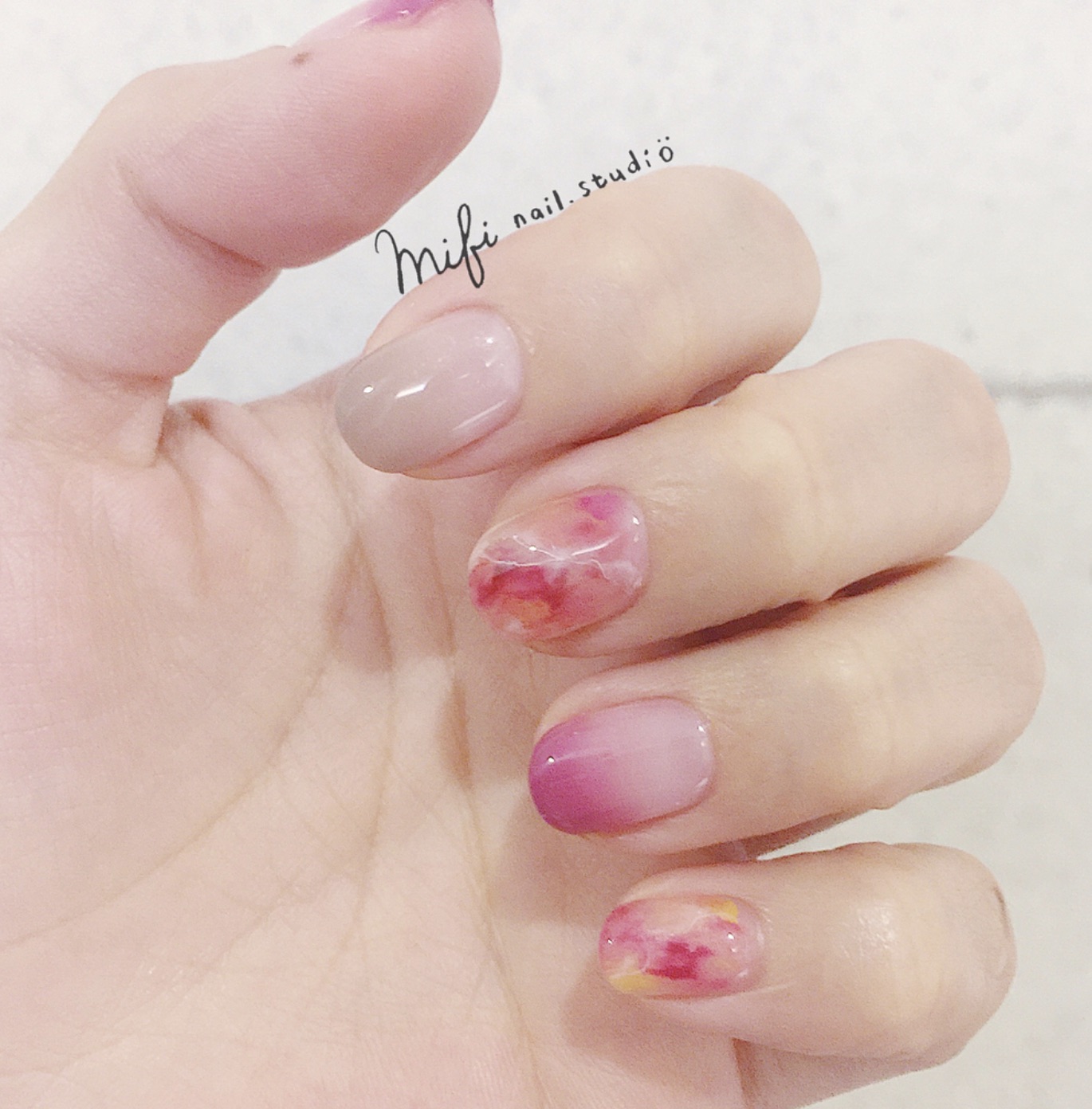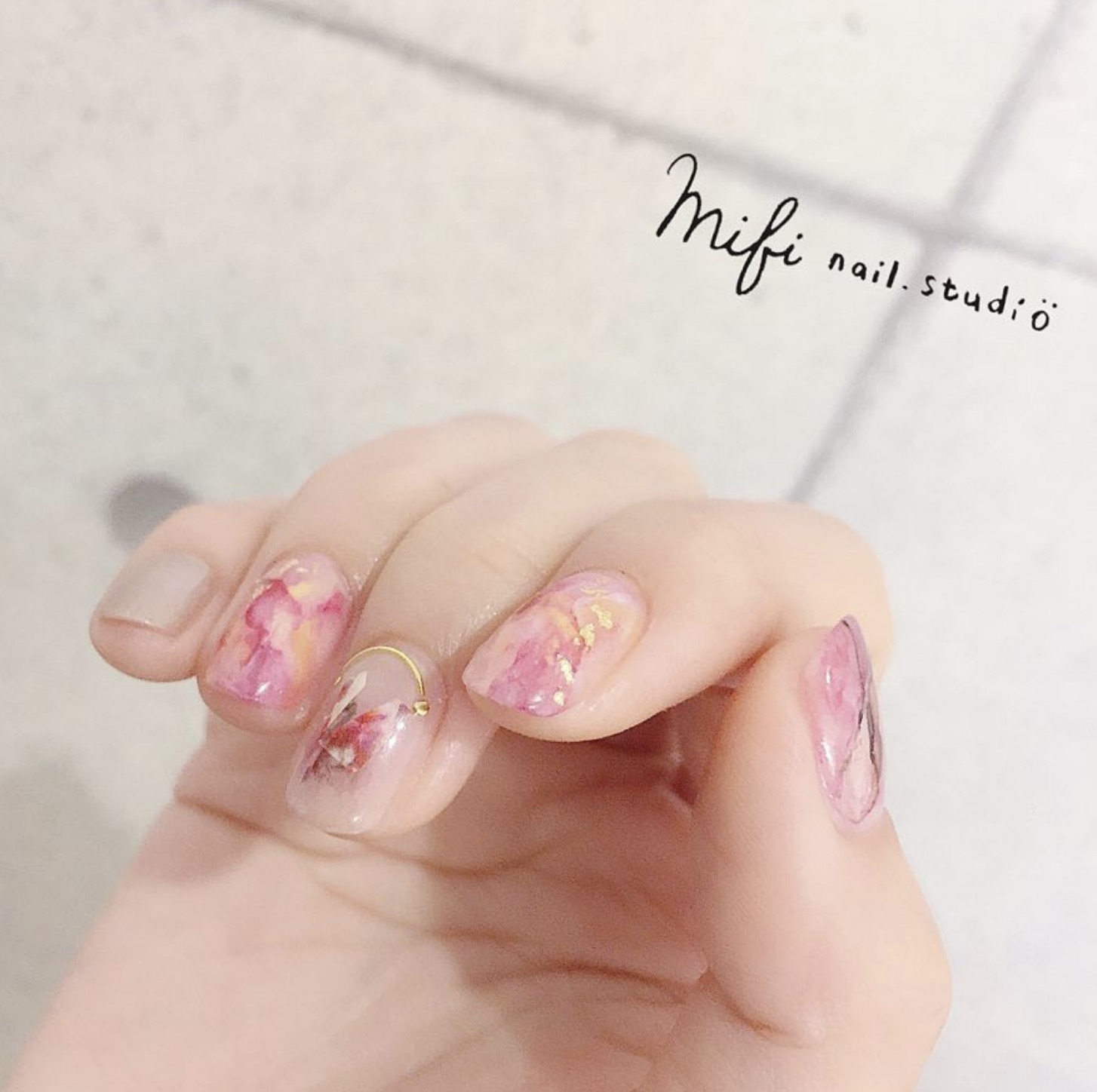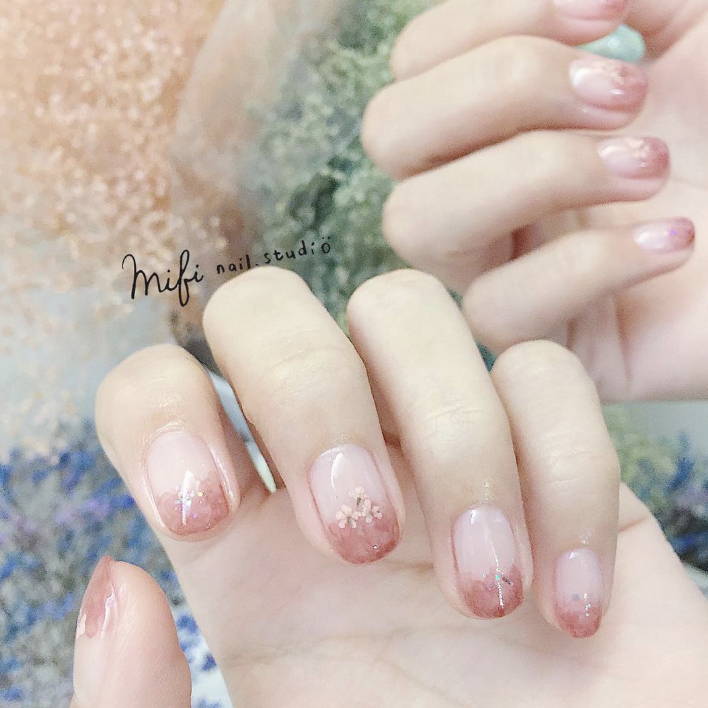 講到最溫柔嘅顏色,一定係櫻花粉紅~透明甲面襯托各種粉紅色乾花,份外優雅,散發少女味~