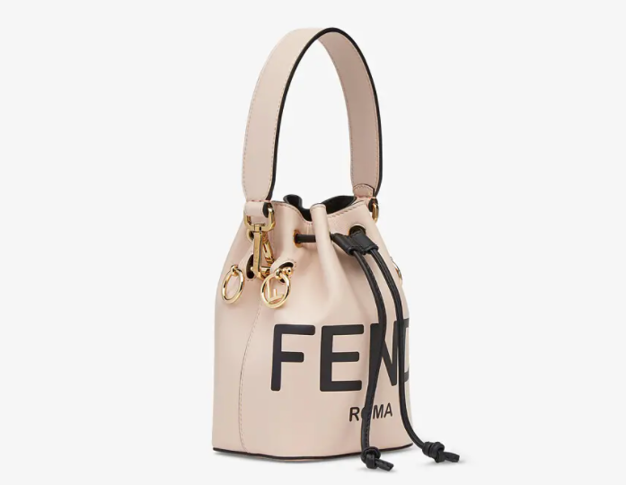 在2020年秋冬新推出,以棕色皮革製成的小型水桶袋,大大的字樣「FENDI ROMA」裝飾在粉嫩皮質袋身,將經典水桶袋型Mon Tresor更為活潑的意象展現。且飾有金色表面金屬製品,提供兩條可拆卸肩帶,一長一短,可肩孭或斜孭。