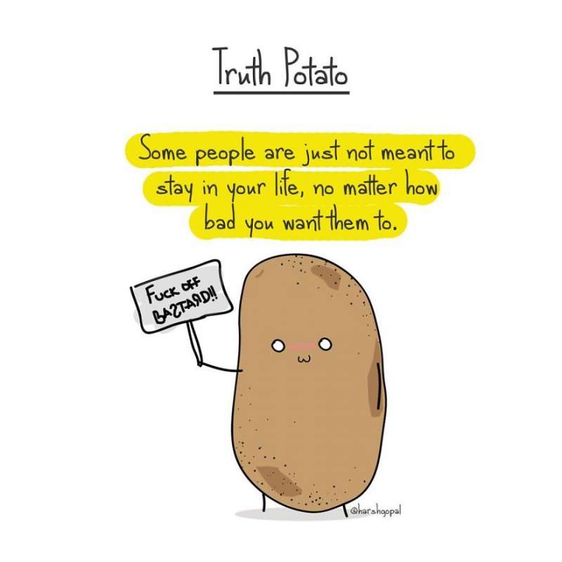 人愈大,慢慢愈明白現實唔係好似我地以往所想, 世界係殘酷嘅,就等我地一齊認清現實,學會堅強啦!IG「Truth Potato」入面有唔同以馬鈴薯為主角嘅插畫,分享一啲生活小智慧,雖然殘酷,但卻非常真實~