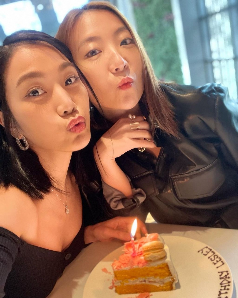 1月28日是Lesley的生日,受到晚上6時後禁止餐廳堂食的影響,她相約好姊妹午膳慶祝生日,二人更特地夾好Dress Code,穿上黑色純素皮衣姊妹裝,身為主角的Lesley內搭露肩裝,照片中展現出甜到漏的笑容!她在IG留言:「和閨蜜提早慶祝生日!今天放假,她帶我去吃Steak!很開心很感恩!」,就連好友黃智雯都留言大讚Lesley:「Natural beauty」!