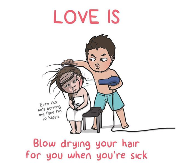 #1 幸福是...生病時有人幫你吹頭。即使係將強風直接吹在你臉上,你還是會覺得被照顧中。(笑)