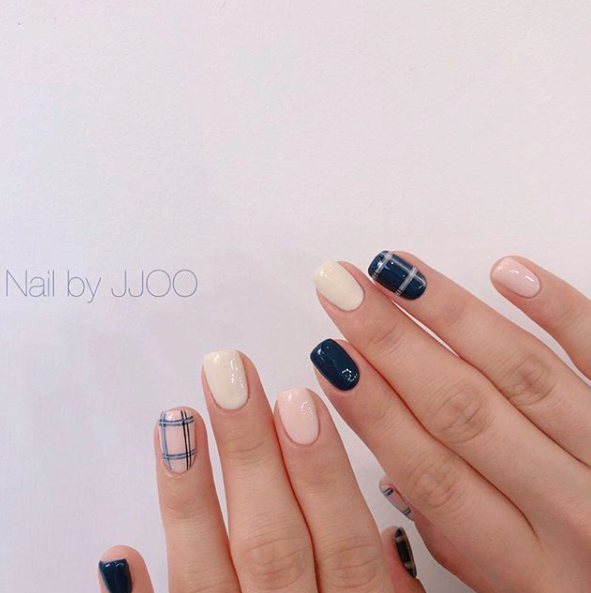 可愛馬卡龍配色都超適合做成格紋美甲,如果你想要呈現甜美氣質風格,就可以利用馬卡龍配色來做變化。