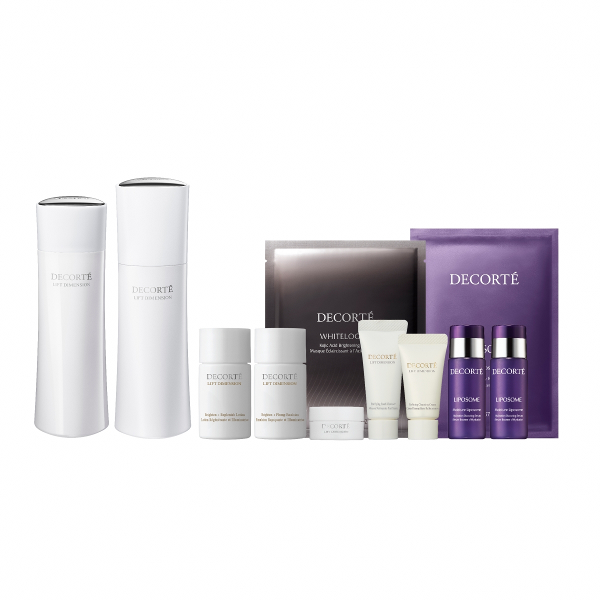 若想徹底感受Lift Dimension系列的修護力量,就要連同於去年10月推出的LIFT DIMENSION系列一同使用,為「面部印象」及「肌膚顏色印象」帶來最完美的修護,令已鬆弛的肌膚重塑3D元彈力及立體,讓黃色化、布滿陰影的膚色重現淨白剔透美!現在只需要$980就能一次過得到整套價值$1,703的【LIFT DIMENSION 煥白緊緻亮肌套裝】,當中包括LIFT DIMENSION煥白緊緻亮肌乳液200ml+14ml、LIFT DIMENSION 煥白緊緻亮肌化妝水200ml +14ml、LIFT DIMENSION深層立體緊緻卸妝霜 6g 、 LIFT DIMENSION深層立體緊緻潔面霜8g 、LIFT DIMENSION煥白緊緻亮肌面霜2.5g ,以及Moisture Liposome保濕精華9ml x 2、Moisture Liposome深層保濕亮肌面膜和Whitelogist麴酸高效美白精華面膜各1片! 要成就無可挑剔的美肌,這套裝一定要擁有,立即約埋閨蜜,前住入手吧!