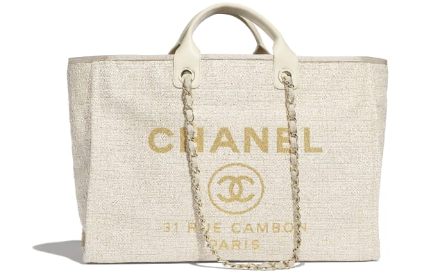 喜歡大袋子的女生都愛Chanel的購物袋,它的材質為帆布,以金色字熨上Chanel的Logo,配搭白色皮革手挽和肩帶,悠閒中滲透一點點貴氣!