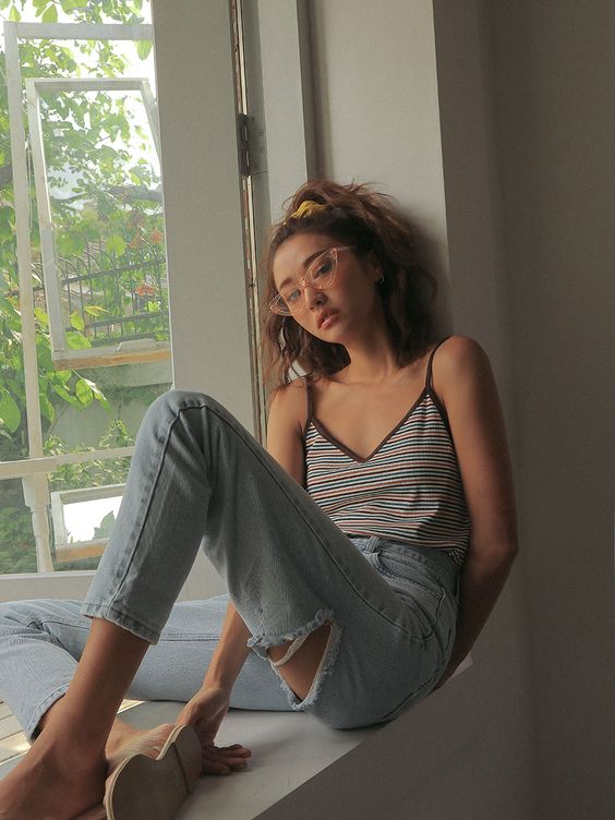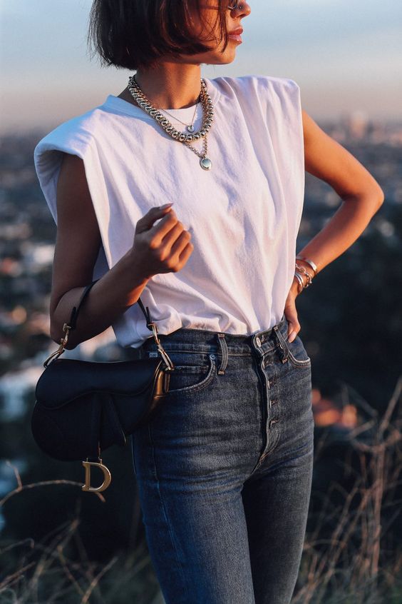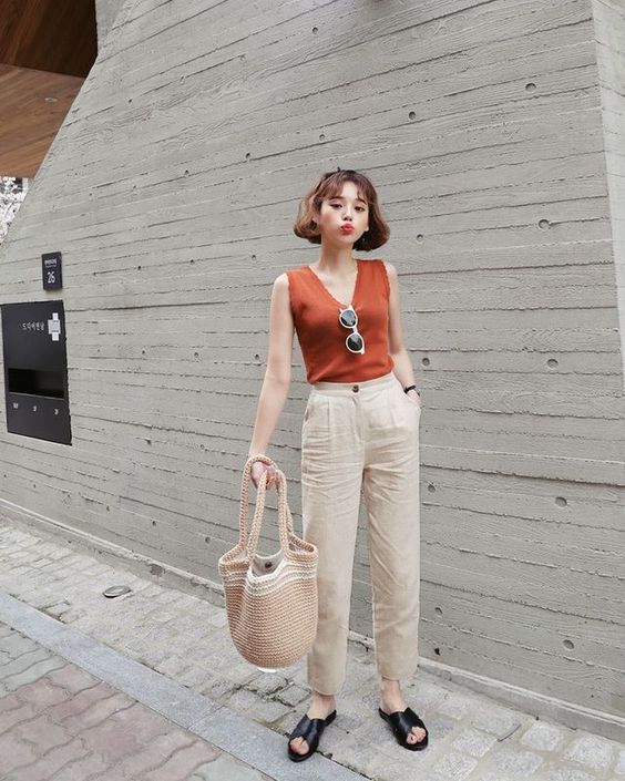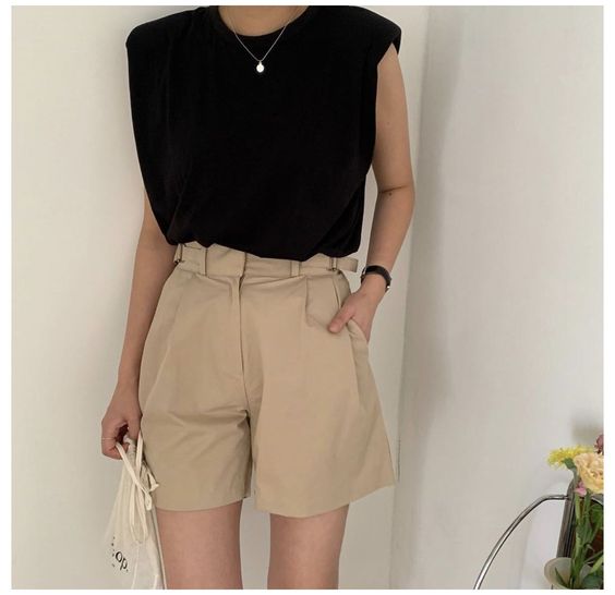 如果怕有小肚腩的女生,很多時都會選擇寬鬆或直筒背心,雖然可以遮著肚腩,但看起來卻很臃腫,看起來更胖!建議女生穿上高腰褲,並將背心攝進褲內,增加俐落感,凸顯自己的腰線,看起來修身又顯瘦!