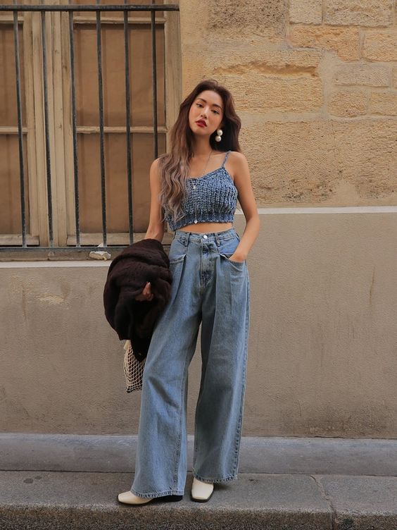 2. 摺角牛仔闊褲:顯腿短不適合矮小身形,面料厚實版型像水桶