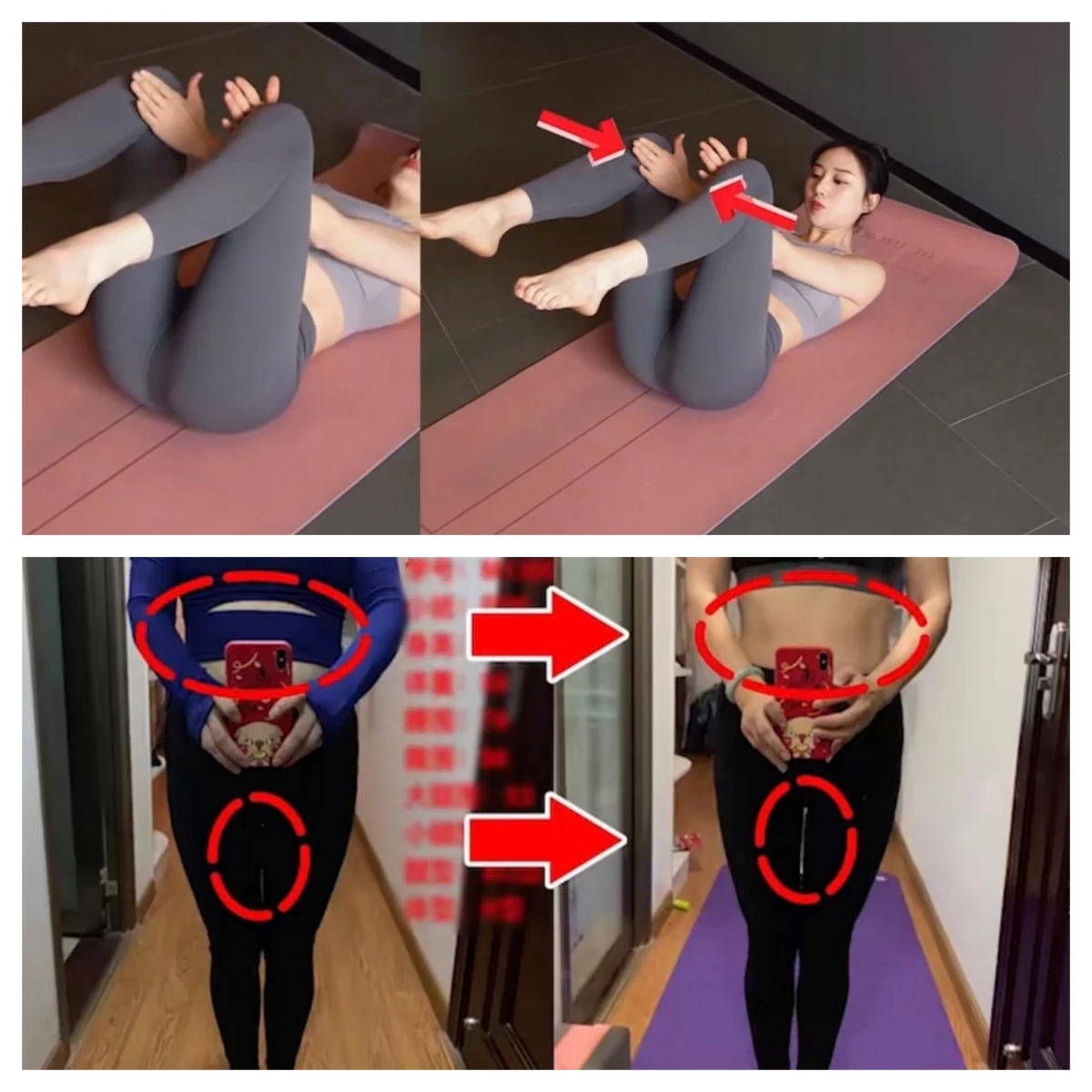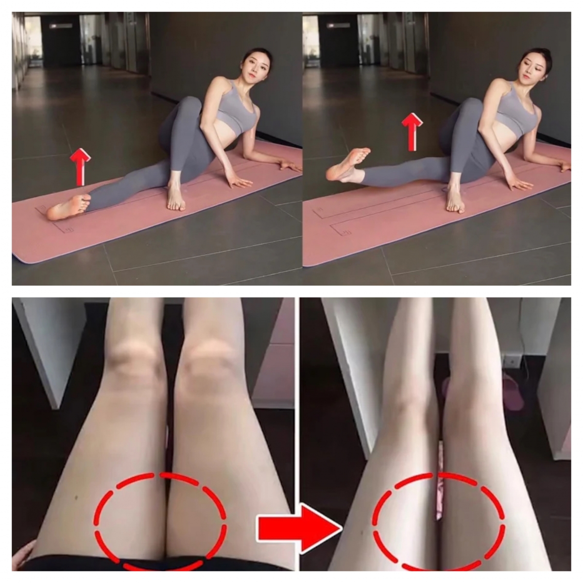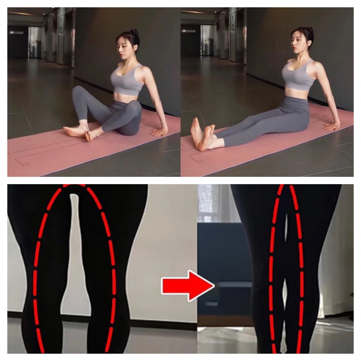 坐在瑜珈墊上,雙腿屈膝確保腳踭貼住腳踭,然後雙腿慢慢往身體的方向靠近,會明顯感受到大腿內部肌肉的收緊感。一共做3組,每組20次。這個動作不僅可以收緊大腿內側贅肉,還能有效改善O型腿問題,讓雙腿又直又細。