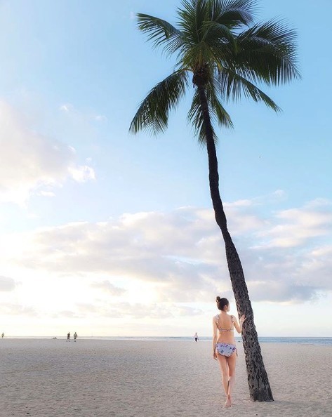 之前香香仲同老公去夏威夷渡假散心,佢換上比堅尼,大show白滑玉背同埋長腿,當時懷孕已有5個月,雖然有身孕,但從背影睇得出佢嘅身形依然好纖瘦,完全零孕味!