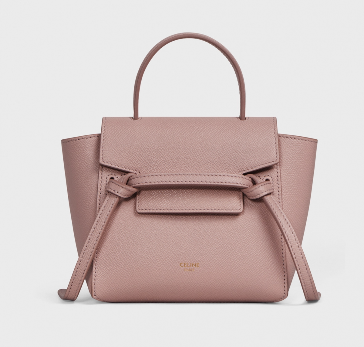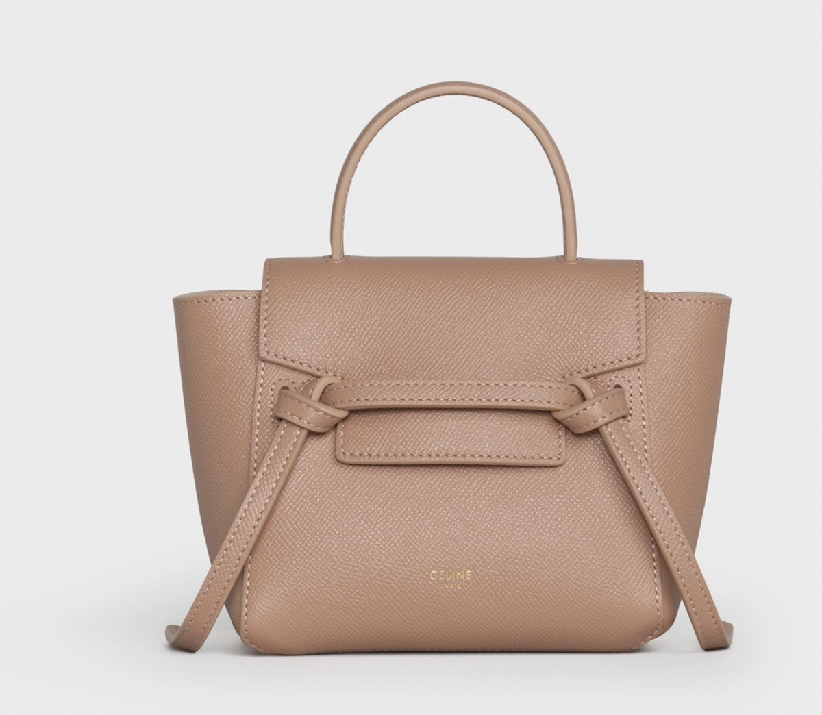CELINE BELT BAG自2014年推出後,直到現在仍然是大熱款式,拿起它優雅氣質提升!兩條細長的紐結皮帶設計像鯰魚一樣,故俗稱為「鯰魚包」,同樣有4種尺寸可供選擇,分為:Pico、Mini、Mirco以及Nano,深受不少OL歡迎呢!