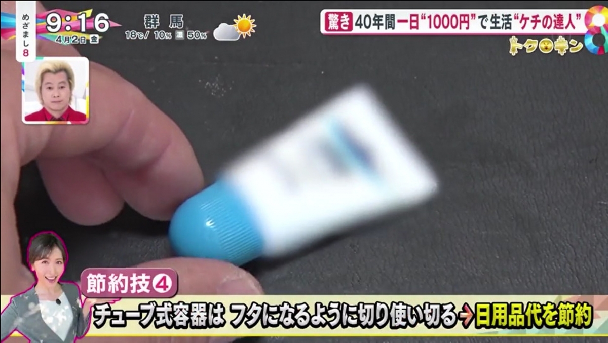 生活中有不少東西使用管狀容器,例如牙膏、洗面奶、身體乳等,用到最後總是很難擠出來,此時小笠原洋子會用剪刀打開,將殘餘的東西用到一乾二淨。