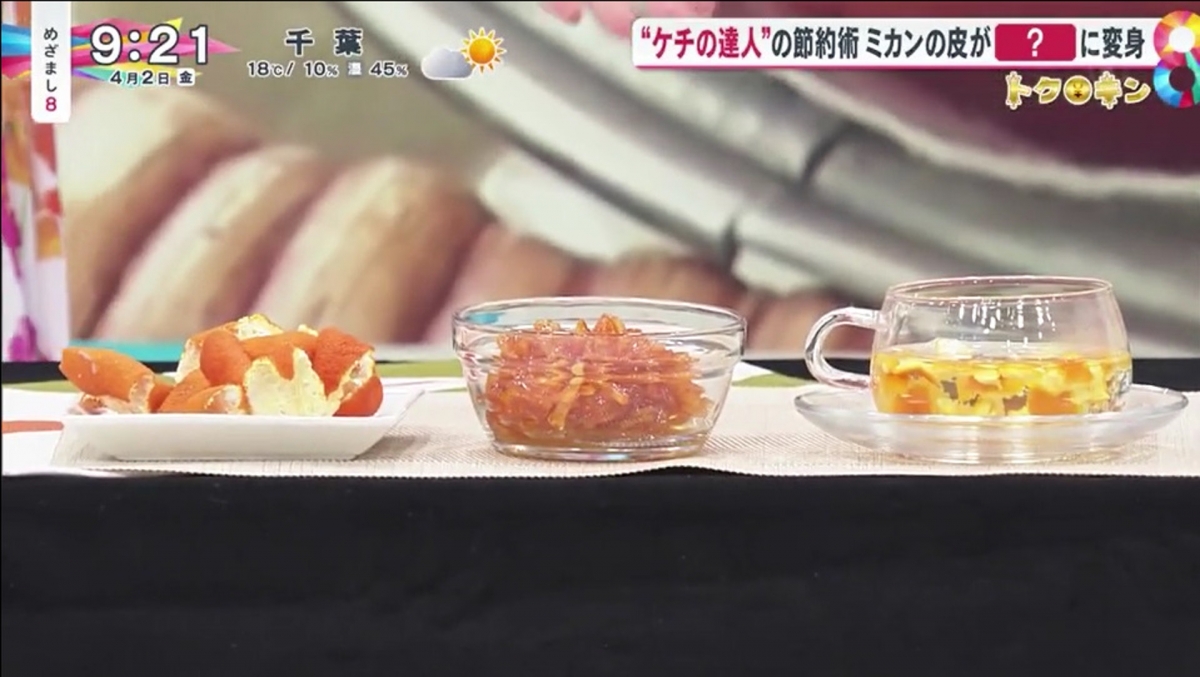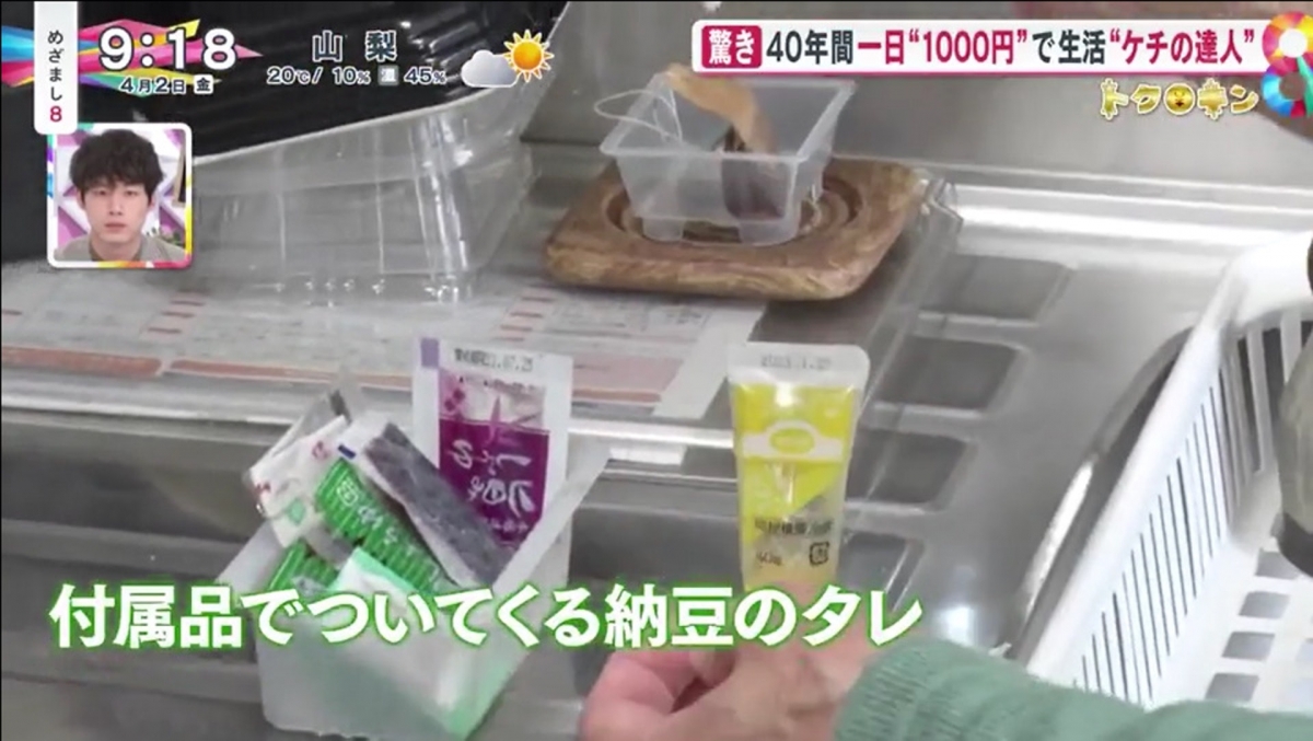 小笠原洋子坦言自己從不直接購買調味料,她會將納豆、即食麵等附送的調味包留下,然後在煮飯時使用。另外,吃過的橙皮曬乾後可製成健康果醬,既美味又慳錢。