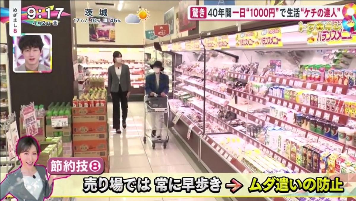 為了避免購入不必要的東西,小笠原洋子到超市後會迅速前往商品擺放的區域,快速拿起去櫃檯付款,絕不會在超市閒逛。