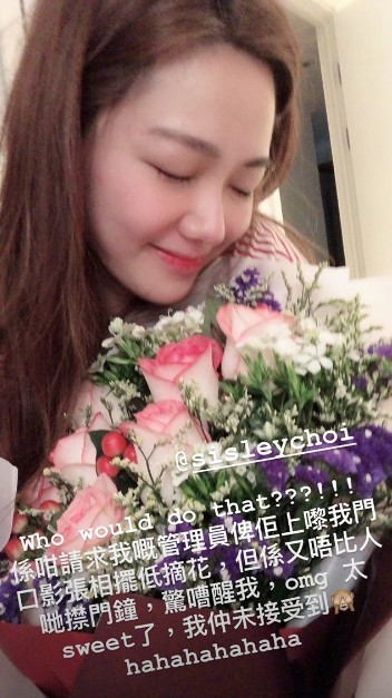 原來蔡思貝朝早6點鐘就去咗靚湯屋企樓下,係咁求樓下管理員俾佢上去靚湯屋企擺低紮花,但因驚嘈醒佢所以唔俾人按門鐘,靚湯對閨蜜嘅暖心舉動表示:「omg,太sweet了,我仲未接受到,hahahahahaha」