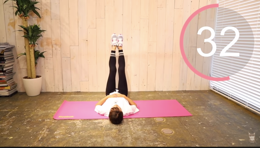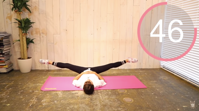 首先平躺在瑜珈墊上,抬起雙腳,與身體呈90度,然後雙腳開合。這個動作做20下為一組,休息10秒再繼續做,建議做3組。