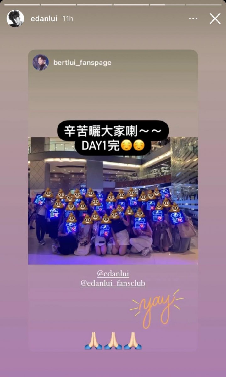 除了大批「姜糖」身穿黑衣在姜濤的巨型海報及花籃前合照之外,MIRROR其他成員Anson Lo的fans穿上粉紅色Tee聚集在花籃及「Anson Lo公仔」前為偶像打氣,而Ian陳卓賢、Jeremy李駿傑及隊長Lokman楊樂文亦各有fans聚集支持偶像。