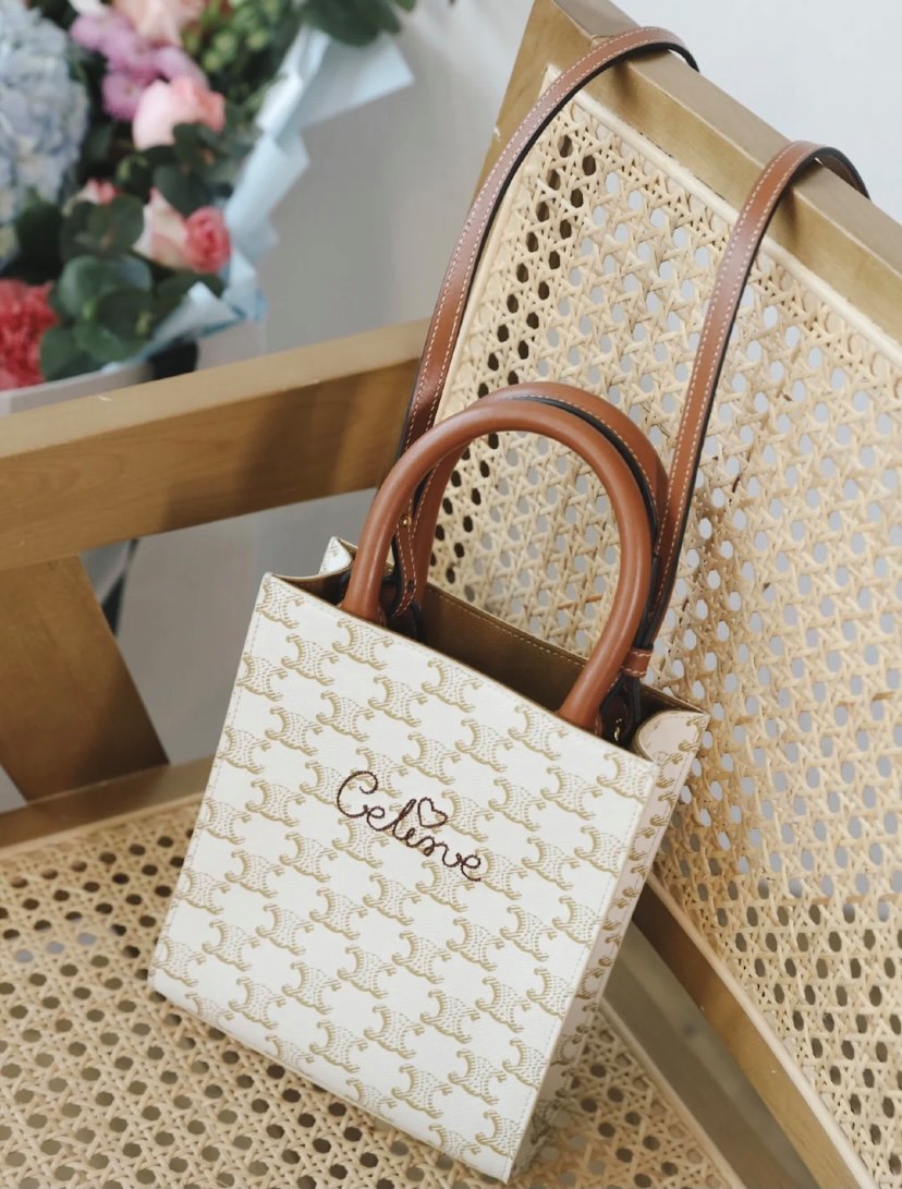 去年推出的Mini Cabas深受女生們的喜愛,如今CELINE乘勝追擊採用全新的老花配色,前方同樣印上 CELINE PARIS 的字樣,簡約率性的設計讓搭配度大增,迷你尺寸亦更適合亞洲女生較嬌小的身材!無論手拿或是斜揹,尺寸也是完美的啊~