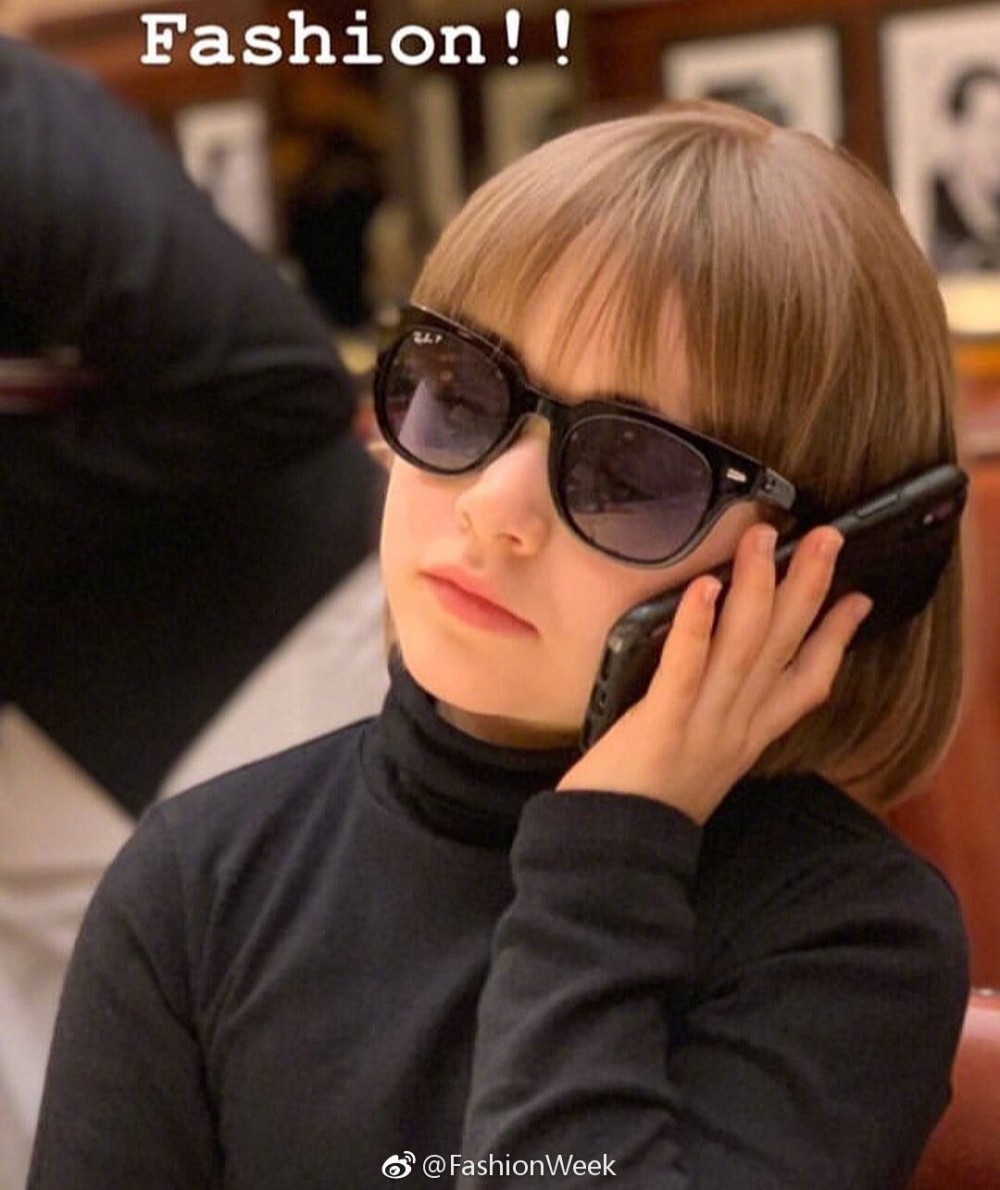 哈七戴上太陽眼鏡滲透著陣陣星味,100%遺傳了父母的優良基因和媽媽維多莉亞的時尚感,拿著手機的樣子活像一個頂級模特兒~