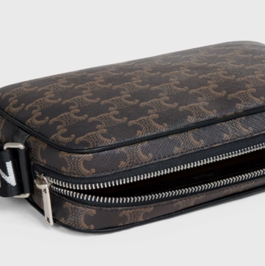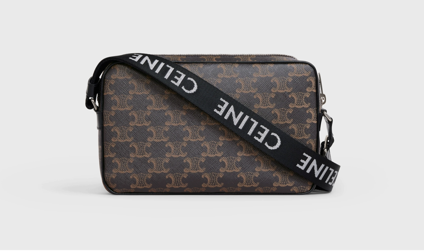 CELINE經典老花款,棕褐色的Triomphe Canvas小牛皮百搭又耐看,配上印有Celine字樣的尼龍背帶,令造型添上型格調皮的感覺!