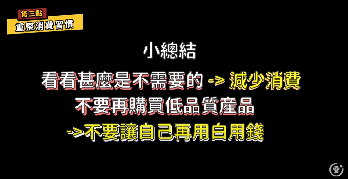 雪姨分享自己以前是看見漂亮的化妝品、護膚品等都會忍不住就買,特別是以為買便宜的東西沒所謂,但原來花錢買很多件便宜的都不買貴但耐穿的單品划算,所以她建議女生買東西除了看價錢外,品質亦很重要,別再讓自己白花錢!而想消費時也不妨想想:看看甚麼是不需要的,這樣有助你減少消費!