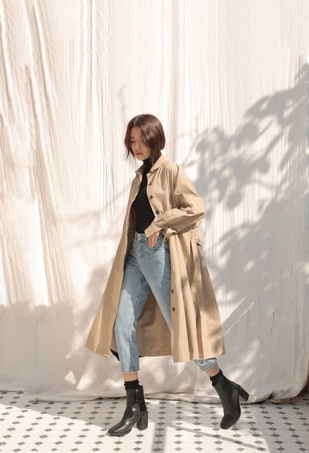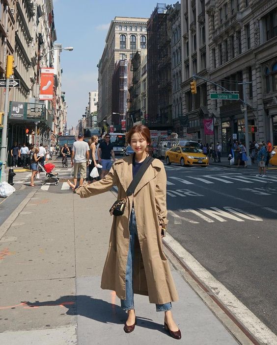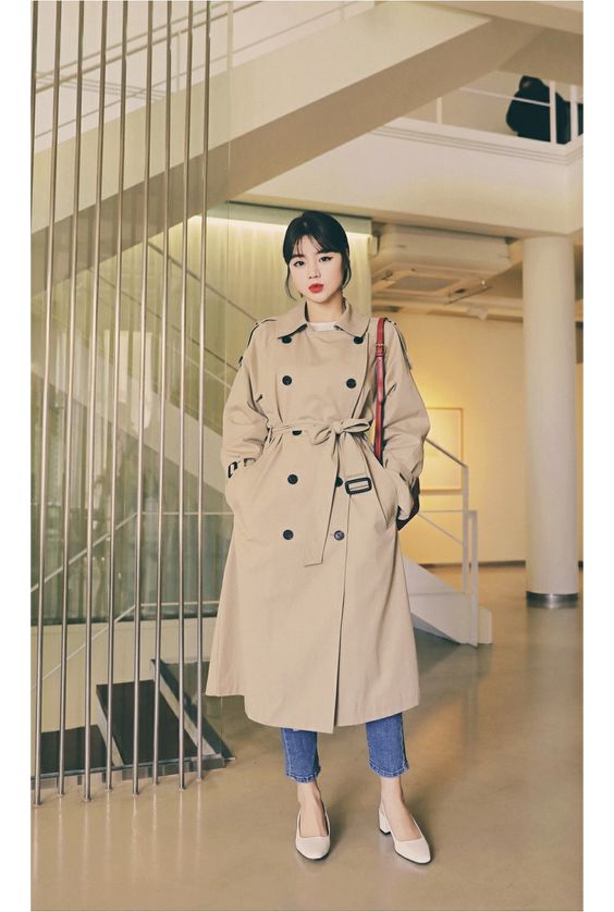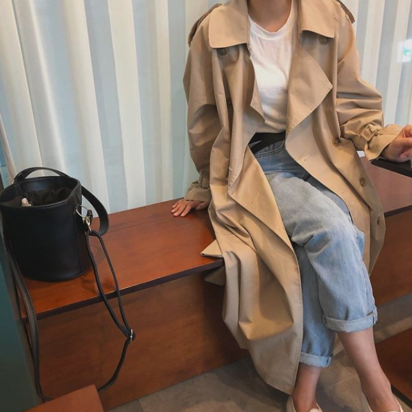 韓國女生最喜歡的日常衣著就是一件乾濕褸配搭牛仔褲,營造悠閒舒服的感覺,腳穿一對平底鞋、手拿一個小手袋,整個人馬上變得型格又時尚~
