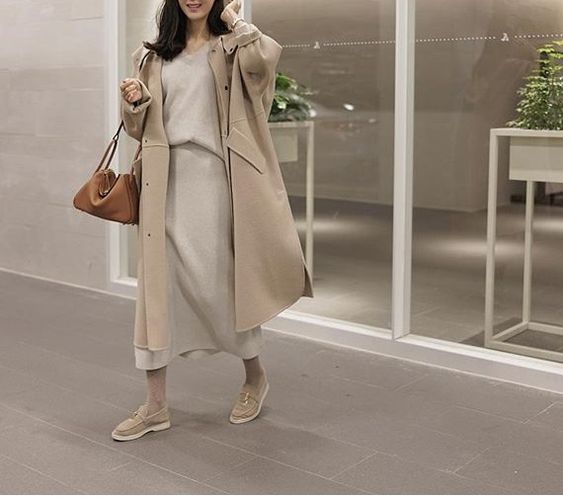 用乾濕褸也能配搭出優雅的氣質感,只需要加一條美美的長裙就可以,這樣穿很有女人味啊~!