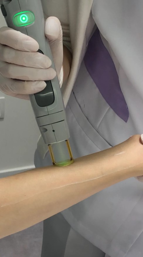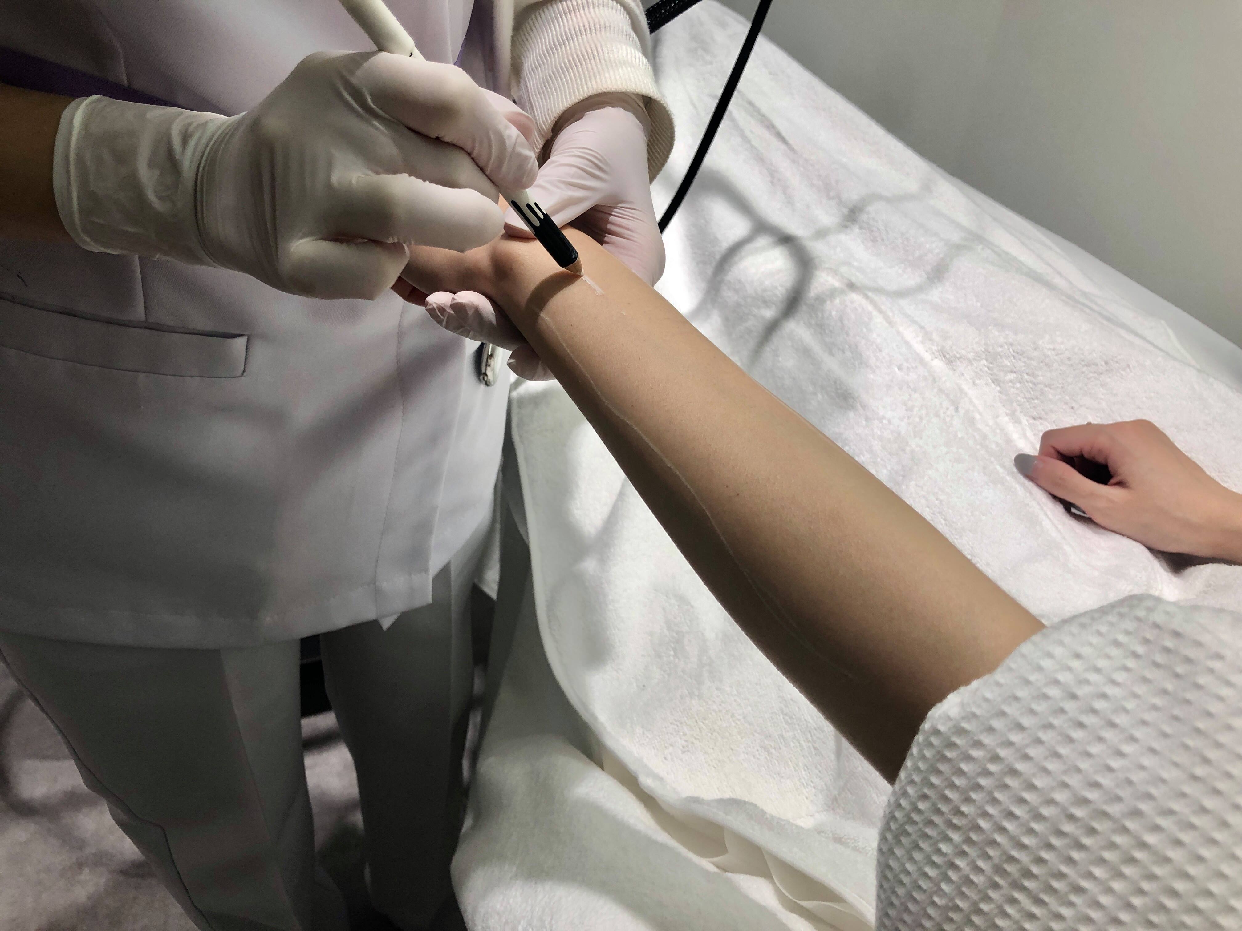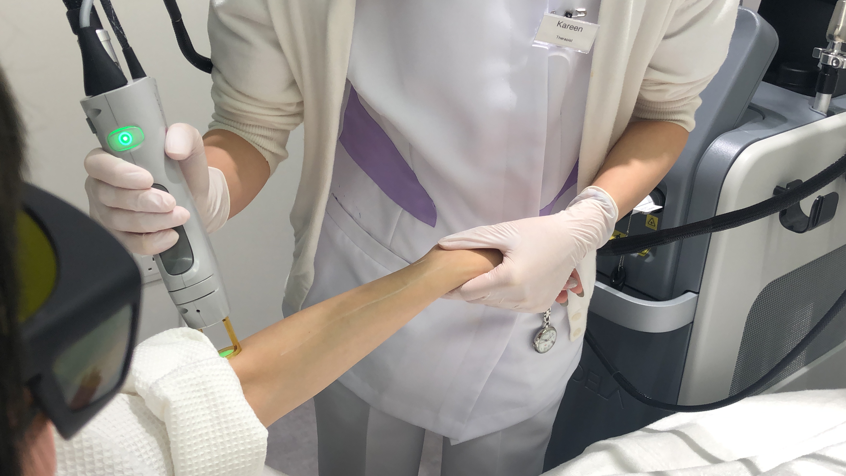 開始前治療師超貼心為我提供激光專用眼鏡,確保療程時激光不會傷害到雙眼,並在手臂位置細心的畫上分區後就開始,因為脫毛機配備「智能降溫系統」在發射激光前毫秒間噴射-20度的霧態冷凍劑,為皮膚做到鎮靜及急速冷凍的效果,所以美編在整個過程中絲毫沒有任何痛楚感,只會感到如少許冰水噴在肌膚的感覺,整個過程不到30分鐘就完成!當中治療師也不會硬銷療程,令美編可以在零壓力下完成脫毛療程,值得一讚!