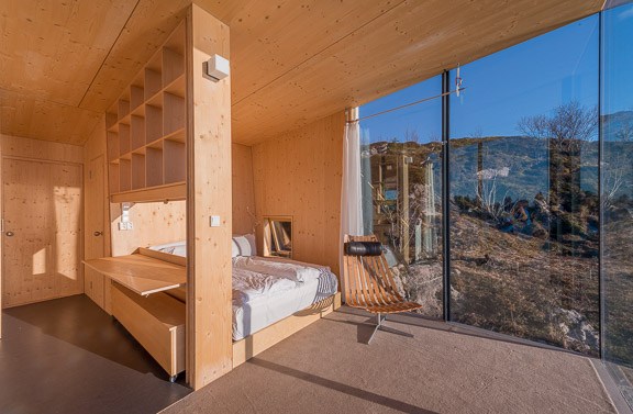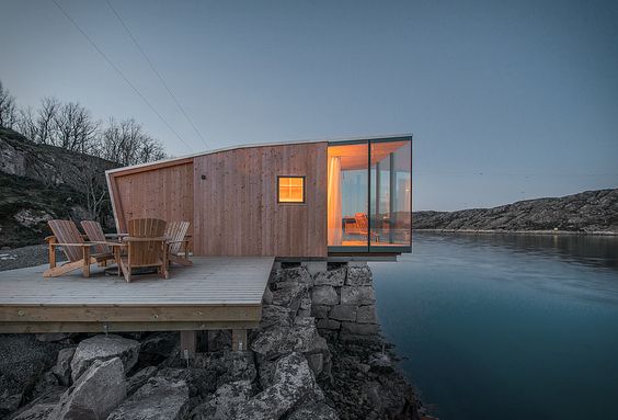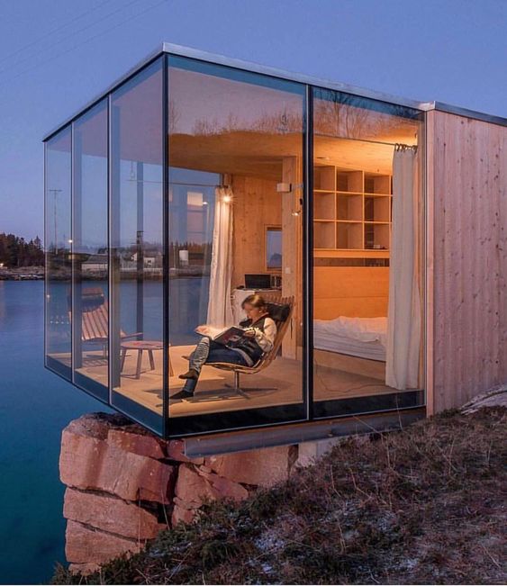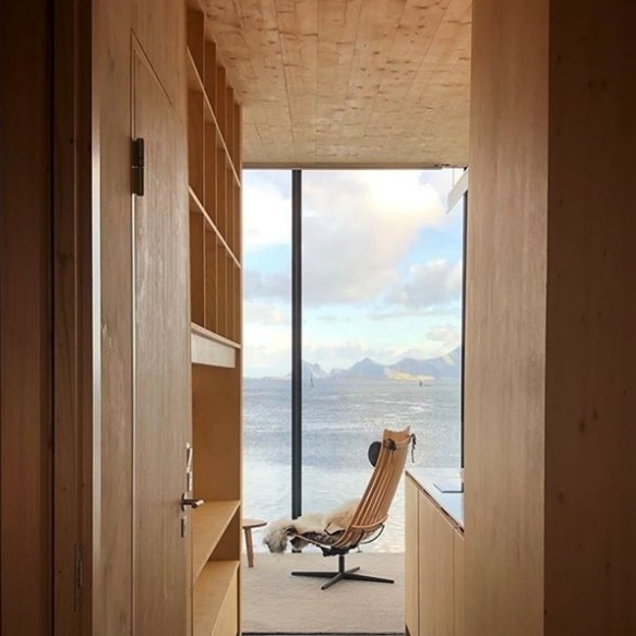 小木屋面向超美的海景和山景,早上拉開窗簾,坐在木椅上喝著咖啡,欣賞遠處的景色;晚上則可以舒服躺在床上,和愛人一起看日落和極光,這種生活真是太美好了!