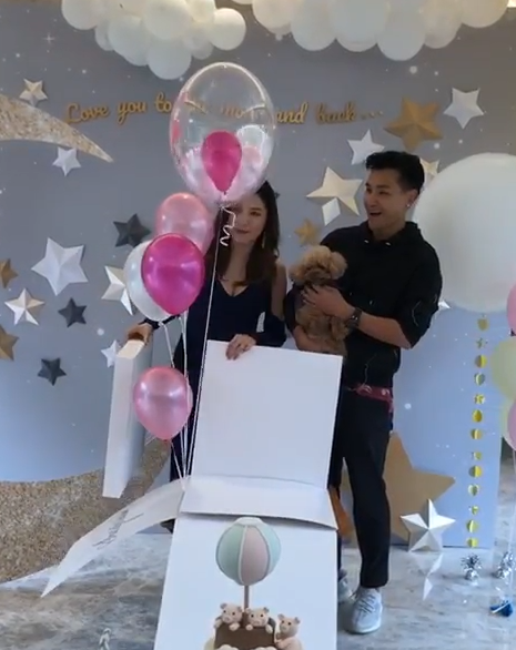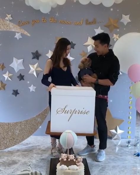 今日單文柔就喺ig上放咗一條「unboxing」片段,兩公婆一早準備咗一個大盒,寫有surprise (驚喜)嘅紙盒一打開就彈出粉紅色氣球,寓意「小豬比」係個bb女!