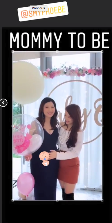 鍾晴又喺IG story上載影片,見到佢興奮狂摸單文柔肚皮,而單文柔就拎住氣球顯得好開心。鍾晴又話「Love u and 小豬比so much。」